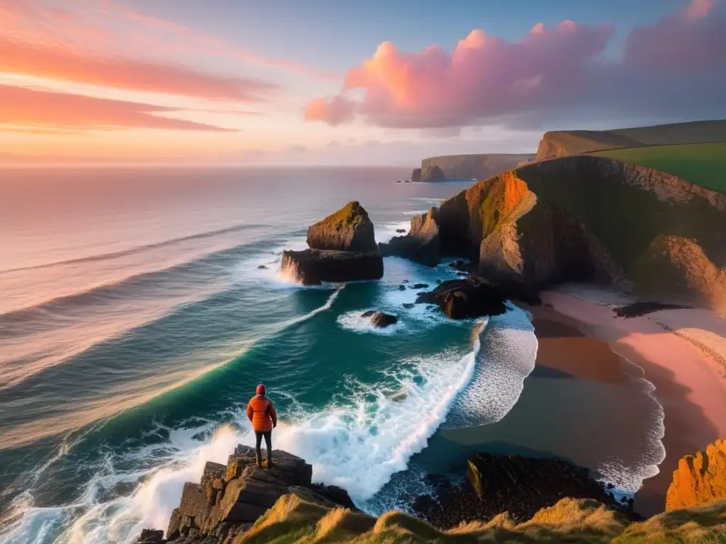 Desafiante costa de Tristán de Acuña, con acantilados imponentes, olas furiosas y un cielo dramático
